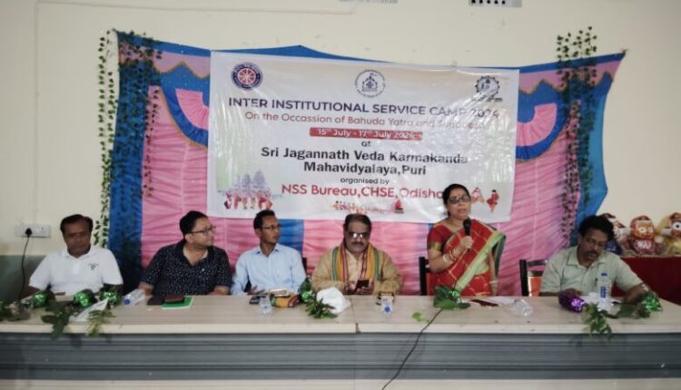 ଭୁବନେଶ୍ବର : ବିଶ୍ଵପ୍ରସିଦ୍ଧ ଶ୍ରୀ ଜଗନ୍ନାଥ ମହାପ୍ରଭୁଙ୍କର ବାହୁଡ଼ା ଯାତ୍ରା ସମୟରେ ଉଚ୍ଚମାଧ୍ୟମିକ ଶିକ୍ଷାପରିଷଦର ଜାତୀୟ ସେବା ଯୋଜନା ଦ୍ଵାରା ତ୍ରିଦିବସୀୟ ସେଚ୍ଛାସେବୀ ସେବା ଶିବିର ଶ୍ରୀଜଗନ୍ନାଥ ବେଦ କର୍ମକାଣ୍ଡ ମହାବିଦ୍ୟାଳୟ,ପୁରୀ ଠାରେ ଆରମ୍ଭ ହୋଇଯାଇଅଛି । ଏହି ଶିବିର ୧୫.୦୭.୨୦୨୪ ଠାରୁ ୧୭.୦୭.୨୦୨୪ ପର୍ଯ୍ୟନ୍ତ ଚାଲିଥିଲା। ପୁରୀ ଜିଲ୍ଲାର ୧୦ଟି ଉଚ୍ଚମାଧ୍ୟମିକ ବିଦ୍ୟାଲୟର ୧୧୦ ଜଣ ଜାତୀୟ ସେବା ଯୋଜନା ର ସେଚ୍ଛାସେବୀ ଓ କାର୍ଯ୍ୟକ୍ରମ ଅଧିକାରୀ ମାନେ ଯୋଗ ଦେଇଛନ୍ତି । ମୁଖ୍ୟଅତିଥି ଭାବରେ ଶ୍ରୀ ଜଗନ୍ନାଥ ସଂସ୍କୃତି ପ୍ରଚାର ସମିତିର ସମ୍ପାଦକ ତଥା ସଂସ୍କୃତି ଗବେଷକ ଶ୍ରୀଯୁକ୍ତ ଅରବିନ୍ଦ କୁମାର ଶତପଥୀ, ଶିବିର କୁ ଉଦ୍‌ଘାଟନ କରିବା ସହିତ ସେବାର ମହନୀୟତା ବିଷୟ ରେ ଆଲୋକପାତ କରିଥିଲେ । ମହାବିଦ୍ୟାଳୟର ଅଧ୍ୟକ୍ଷା ଡ଼.ହରପ୍ରିୟା ଦାଶ, ମୁଖ୍ୟବକ୍ତା ଭାବରେ ଯୋଗ ଦେଇ ଆଦର୍ଶସେବା କର୍ମ କରିବାପାଇଁ ଛାତ୍ରଛାତ୍ରୀ ମାନଙ୍କୁ ପରାମର୍ଶ ଦେଇଥିଲେ । ଉଚ୍ଚମାଧ୍ୟମିକ ଶିକ୍ଷାପରିଷଦର ଜାତୀୟ ସେବା ଯୋଜନାର ସଂଯୋଜକ ଡ଼. ବିଶ୍ଵମୋହନ ଜେନା ଶିବିରର ଆଭିମୁଖ୍ୟ ବିଷୟରେ ସୂଚନା ପ୍ରଦାନ କାରିଥିଲେ। ଜାତୀୟ ସେବା ଯୋଜନା ପ୍ରଶିକ୍ଷଣ କେନ୍ଦ୍ରର ସହ ସଂଯୋଜକ ଶ୍ରୀଯୁକ୍ତ ନୀରଦବରଣ ଖୁଣ୍ଟିଆ, ଛାତ୍ର ଛାତ୍ରୀ ମାନେ ସେବା ପ୍ରଦାନ କରିବା ସମୟରେ ମନଯୋଗ ସହକାରେ ସେବା କରିବା ପାଇଁ ଛାତ୍ରଛାତ୍ରୀ ମାନଙ୍କୁ କହିଥିଲେ । ମହାବିଦ୍ୟାଳୟର ବରୀଷ୍ଠ ପ୍ରାଧ୍ୟାପକ ଡ଼. ରବିଶଙ୍କର ମିଶ୍ର, ଏହି ଶିବିର କାର୍ଯ୍ୟକ୍ରମକୁ ପରିଚାଳନା କରିଥିଲେ । ଏହି ତ୍ରିଦିବସୀୟ ସେବା ଶିବିରରେ ଶୁଦ୍ଧ ଜଳ ବିତରଣ, ଓ.ଆର୍.ଏସ୍. ବିତରଣ, ମାନବ ଶୃଙ୍ଖଳା କାର୍ଯ୍ୟକର୍ମ, ସମୂଦ୍ର ଓ ପବିତ୍ର ପୁଷ୍କରଣୀ ସଫେଇ, ମୁକ୍ତ ରନ୍ଧନ ଖାଦ୍ୟ ବିତରଣ, ରଥଖଳା-ବଡ ଦାଣ୍ଡ ସଫେଇ, ତଥା ନିଖୋଜ ବ୍ୟକ୍ତିଙ୍କୁ ସଠିକ୍ ପରାମର୍ଶ ପ୍ରଦାନ ଇତ୍ୟାଦି ବିଭିନ୍ନ କାର୍ଯ୍ୟକର୍ମ କରିବା ନିମନ୍ତେ ସେଚ୍ଛାସେବୀ ଓ ସେଚ୍ଛାସେବିନୀ ମାନଙ୍କୁ ପରାମର୍ଶ ଦିଆଯାଇଅଛି ।