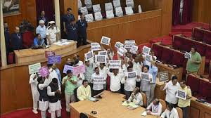 ଭୁବନେଶ୍ଵର: ମୌସୁମୀ ଅଧିବେଶନର ଚତୁର୍ଥ ଦିନରେ ବି ବିଧାନସଭା ଅଚଳ। ମାତ୍ର ୭ ମିନିଟ୍ ଚାଲିଲା ବିଧାନସଭା। କଂଗ୍ରେସ ଓ ବିଜେଡି ସଦସ୍ୟଙ୍କ ନାରାବାଜିରେ ଚାଲିପାରୁନି ଗୃହ। ପ୍ରଶ୍ନ କାଳ ଆରମ୍ଭରୁ ପ୍ଲାକାର୍ଡ, ପୋଷ୍ଟର ଧରି ବିରୋଧୀ ସଦସ୍ୟ ହଟ୍ଟଗୋଳ କରିଛନ୍ତି। ଅପରାହ୍ନ ୪ଟା ଯାଏଁ ବାଚସ୍ପତି ଗୃହ ମୁଲତବୀ ଘୋଷଣା କରିଛନ୍ତି। ରାଜ୍ୟ ସରକାର ପଞ୍ଚାୟତିରାଜ ବ୍ୟବସ୍ଥାରେ ଜନପ୍ରତିନିଧିଙ୍କ କ୍ଷମତା ସଂକୁଚିତ କରି ଅଫିସରମାନଙ୍କ କ୍ଷମତା ବୃଦ୍ଧି କରିଛନ୍ତି। ଗଣତନ୍ତ୍ର ବ୍ୟବସ୍ଥାକୁ ବିଜେପି ସରକାରଙ୍କ ଏପରି ନିଷ୍ପତ୍ତି ହତ୍ୟା କରିଥିବାରୁ ଏହାକୁ ବିରୋଧ କରି ଗୃହରେ ବିଜେଡି ପ୍ରତିବାଦ କରିଛି। ତୁରନ୍ତ ରାଜ୍ୟ ସରକାର ଏହି ନିଷ୍ପତ୍ତିର ପୂନର୍ବିଚାର କରିବାକୁ ଦଳ ଦାବି କରିଛି। ସେପଟେ ଅନାସ୍ଥା ନ ଆଣିବାକୁ ଫନ୍ଦି କରିବା ଅଭିଯୋଗରେ କଂଗ୍ରେସ ପ୍ରତିବାଦ କରିଛି। ଯାହାକୁ ନେଇ ଗୃହ ବେଶ ସରଗରମ୍ ରହିଛି। ଚଳିତ ବର୍ଷ ବିଳମ୍ଵରେ ମୌସୁମୀ ଅଧିବେଶନ ଆରମ୍ଭ ହୋଇଛି। ଏଥର ଅଧିବେଶନରେ ମାତ୍ର ୭ଟି କାର୍ଯ୍ୟ ଦିବସ ରହିଛି। ହେଲେ ସରକାରଙ୍କ ଉପରେ ବିରୋଧୀ ବିଜେଡି ଓ କଂଗ୍ରେସ ଭାରି ପଡ଼ିଛନ୍ତି। ଏହାରି ଭିତରେ ଆଜିକୁ ମିଶାଇ ୪ଟି କାର୍ଯ୍ୟ ଦିବସ ସରିବାକୁ ବସିଥିବା ବେଳେ ଆଉ ମାତ୍ର ୩ଟି କାର୍ଯ୍ୟ ଦିବସ ରହିଛି। ଅଚଳାବସ୍ଥାରେ ଗୃହ ଚାଲିଛି।