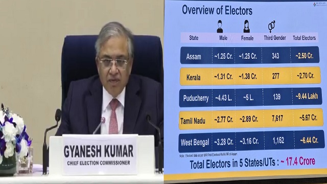 ନୂଆଦିଲ୍ଲୀ : ଦେଶର ୫ଟି ରାଜ୍ୟରେ ବିଧାନସଭା ନିର୍ବାଚନ ପାଇଁ ତାରିଖ ଘୋଷଣା ହୋଇଛି । ମୁଖ୍ୟ ନିର୍ବାଚନ କମିଶନର ଜ୍ଞାନେଶ କୁମାର ତାରିଖ ଘୋଷଣା କରିଛନ୍ତି । ୪ଟି ରାଜ୍ୟ ଏବଂ ଗୋଟିଏ କେନ୍ଦ୍ର ଶାସିତ ଅଞ୍ଚଳ ପାଇଁ ନିର୍ବାଚନ ତାରିଖ ଘୋଷଣା ହୋଇଛି । ତାମିଲନାଡୁ, ଆସାମ, କେରଳ, ପଡୁଚେରୀ, ପଶ୍ଚିମବଙ୍ଗ ବିଧାନସଭା ପାଇଁ ତାରିଖ ଘୋଷଣା ହୋଇଛି ।ଆସାମରେ ଓ କେରଳରେ ୯ ଏପ୍ରିଲ ଗୋଟିଏ ପର୍ଯ୍ୟାୟରେ ଭୋଟ ହେବ । ପଶ୍ଚିମବଙ୍ଗରେ ଦୁଇଟି ପର୍ଯ୍ୟାୟରେ ହେବ ଭୋଟ । ଏପ୍ରିଲ ୨୩ ଓ ୨୯ରେ ହେବ ନିର୍ବାଚନ । ତାମିଲନାଡୁରେ ୨୩ ଏପ୍ରିଲରେ ଗୋଟିଏ ପର୍ଯ୍ୟାୟରେ ହେବ । ପଡୁଚେରୀରେ ଏପ୍ରିଲ ୯ରେ ଗୋଟିଏ ପର୍ଯ୍ୟାୟରେ ଭୋଟ ହେବ । ମେ ୪ ତାରିଖରେ ଭୋଟ ଗଣିତ ହେବ ।
