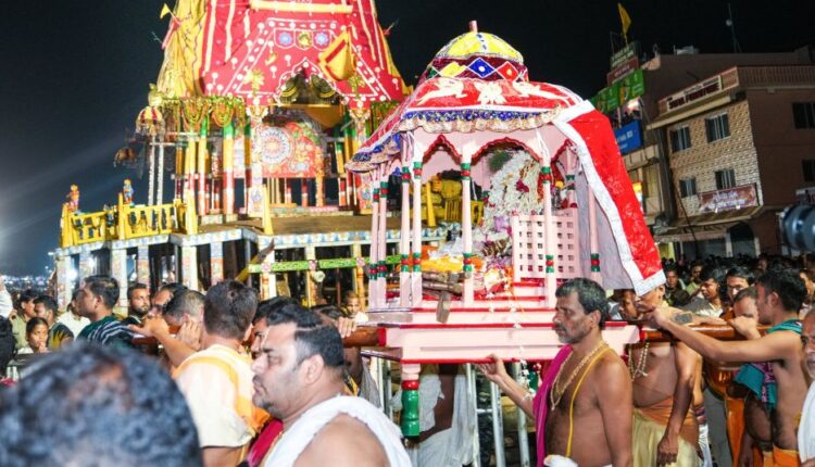 ଭୁବନେଶ୍ବର: ରଥଯାତ୍ରାରେ ମା ଲକ୍ଷ୍ମୀଙ୍କ ପ୍ରଭୃ ଜଗନ୍ନାଥ ନ ନେବାରୁ ମା ଲକ୍ଷ୍ମୀ ରାଗିଲେ। ଗତକାଲି ମଧ୍ୟ ରାତ୍ରରେ ଶ୍ରୀମନ୍ଦିର ଛାଡି ଗୁଣ୍ଡିଚା ମନ୍ଦିର ଆସିଥିଲେ। ଆଉ ସାମନାରେ ଥିବା ଜଗନ୍ନାଥଙ୍କ ନନ୍ଦିଘୋଷ ରଥକୁ ଭାଙ୍ଗିଦେଲେ। ଏହା ଥିଲା ଜଗନ୍ନାଥ ସଂସ୍କୃତିର ଅନ୍ୟତମ ପରଂପରା ହେରାପଞ୍ଚମୀ। ଏହି ଦିନ ରାଗରେ ମା ଲକ୍ଷ୍ମୀ ନନ୍ଦିଘୋଷ ରଥ ଭାଙ୍ଗିବାର ବିଧି ରହିଛି। ଏହି ଉପଲକ୍ଷେ ଗତକାଲି ବିଳମ୍ବିତ ରାତିରେ ପରଂପରା ଅନୁସାରେ ମା ଲକ୍ଷ୍ମୀଙ୍କ ସେବାୟତମାନେ ମାଙ୍କୁ ମାଜଣା କରି ବିଭିନ୍ନ ନୀତି କରି ଶ୍ରୀମନ୍ଦିରରୁ ଗୁଣ୍ଡିଚା ମନ୍ଦିର ଅଭିମୁଖେ ଆଣିଥିଲେ। ସେଠାରେ ବିଭିନ୍ନ ନୀତି ପରେ ନନ୍ଦିଘୋଷର ଏକ କାଠକୁ ମା ଲକ୍ଷ୍ମୀ ଭାଙ୍ଗିଥିଲେ। ଏହାପରେ ପ୍ରଭୃ ଜଗନ୍ନାଥଙ୍କ ଆଜ୍ଞାମାଳ ଆସିବା ପରେ ମା ହେରା ଗୋହିରୀ ବାଟେ ଶ୍ରୀମନ୍ଦିରକୁ ଫେରିଥିଲେ।