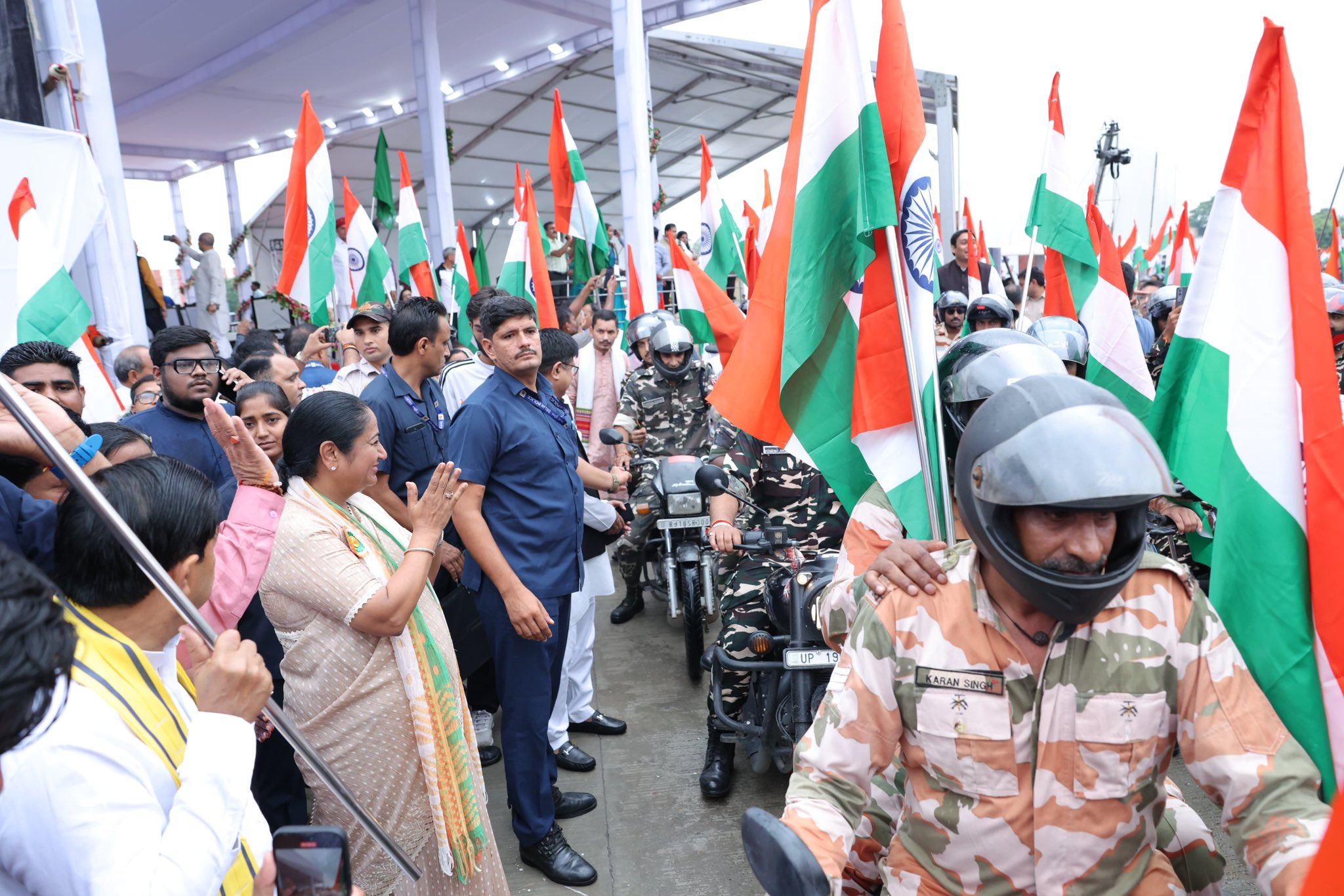 ନୂଆଦିଲ୍ଲୀ: ସ୍ୱାଧୀନତା ଦିବସ ପୂର୍ବରୁ ନୂଆଦିଲ୍ଲୀର ଭାରତ ମଣ୍ଡପମରୁ ଏକ ବିଶାଳ ହର ଘର ତିରଙ୍ଗା ବାଇକ୍ ଶୋଭାଯାତ୍ରାକୁ ପତାକା ଦେଖାଇ ଶୁଭାରମ୍ଭ କରାଯାଇଛି। କେନ୍ଦ୍ର ସଂସଦୀୟ ବ୍ୟାପାର ମନ୍ତ୍ରୀ କିରେନ ରିଜିଜୁ, କେନ୍ଦ୍ର ସଂସ୍କୃତି ଏବଂ ପର୍ଯ୍ୟଟନ ମନ୍ତ୍ରୀ ଗଜେନ୍ଦ୍ର ସିଂହ ଶେଖାୱତ, କେନ୍ଦ୍ର ପ୍ରତିରକ୍ଷା ରାଷ୍ଟ୍ରମନ୍ତ୍ରୀ ସଞ୍ଜୟ ସେଠ୍, ଦିଲ୍ଲୀ ମୁଖ୍ୟମନ୍ତ୍ରୀ ରେଖା ଗୁପ୍ତା ଏବଂ ଅନେକ ସାଂସଦ ଏହି ଦେଶାତ୍ମବୋଧକ କାର୍ଯ୍ୟକ୍ରମରେ ଅଂଶଗ୍ରହଣ କରିଥିଲେ। ଜନତାଙ୍କୁ ସମ୍ବୋଧିତ କରି ଗଜେନ୍ଦ୍ର ସିଂହ ଶେଖାୱତ ତ୍ରିରଙ୍ଗାକୁ ଏକ ସମୂହ ଶକ୍ତି ଭାବରେ ଗୁରୁତ୍ୱାରୋପ କରିଥିଲେ, ଯାହା ନାଗରିକମାନଙ୍କୁ ଦେଶ ପାଇଁ ଦିଆଯାଇଥିବା ବଳିଦାନର ସ୍ମୃତିଚାରଣ କରାଇଥାଏ । ସେ କହିଥିଲେ ଯେ, “ଆମ ପ୍ରଧାନମନ୍ତ୍ରୀ ନରେନ୍ଦ୍ର ମୋଦୀଙ୍କ ଦ୍ୱାରା କଳ୍ପନା କରାଯାଇଥିବା, ଏହି ଅଭିଯାନରୁ-ଉତ୍ସବରେ ପରିଣତ ହୋଇଥିବା କାର୍ଯ୍ୟକ୍ରମ, ବିଶେଷକରି ‘ଅପରେସନ ସିନ୍ଦୂର’ର ସଫଳତା ପରେ ସମଗ୍ର ଦେଶରେ ଏକ ଉତ୍ସାହର ବାତାବରଣ ବ୍ୟାପିଯାଇଛି। କେନ୍ଦ୍ରମନ୍ତ୍ରୀ ତ୍ରିରଙ୍ଗାର ସ୍ଥାୟୀ ପ୍ରତୀକକୁ ଏକତା ଏବଂ ତ୍ୟାଗର ଏକ ସମ୍ମିଳିତ ସମାହାର ଭାବରେ ଗୁରୁତ୍ୱାରୋପ କରିଥିଲେ । ଅପରେସନ୍ ସିନ୍ଦୂର ଦ୍ୱାରା ସୃଷ୍ଟି ହୋଇଥିବା ଗତିରୁ ପ୍ରେରିତ ହୋଇ, ସେ ଉଲ୍ଲେଖ କରିଥିଲେ ଯେ, ଦେଶ ଅତୁଳନୀୟ ଉତ୍ସାହ ଏବଂ ଗର୍ବର ପରିବେଶରେ ଆଚ୍ଛାଦିତ – ସଶସ୍ତ୍ର ବାହିନୀର ବୀରତ୍ୱ ଏବଂ ଭାରତ ପ୍ରତି ଗଭୀର ସାମୂହିକ ଆନ୍ତରିକତା ଉଭୟକୁ ପ୍ରତିଫଳିତ କରୁଛି । ସେ ଉଲ୍ଲେଖ କରିଥିଲେ ଯେ, ପ୍ରଧାନମନ୍ତ୍ରୀ ନରେନ୍ଦ୍ର ମୋଦୀଙ୍କ ଦ୍ୱାରା କଳ୍ପିତ ଆଧୁନିକ ଅଭିଯାନରୁ ଉତ୍ସବରେ ପରିଣତ ହୋଇଥିବା ‘ହର ଘର ତିରଙ୍ଗା’ ପ୍ରୟାସ ମାଧ୍ୟମରେ କିପରି ଜନଆନ୍ଦୋଳନରେ ପରିଣତ ହୋଇଛି । ଏକ ଗଭୀର ଭାବନା, ଯାହା ଭାରତକୁ ‘ବିକଶିତ ଭାରତ’ହେବା ଦିଗରେ, ସୁନିଶ୍ଚିତ ପଦକ୍ଷେପ ମାଧ୍ୟମରେ ‘ଅମୃତ କାଳ’କୁ ପ୍ରବେଶ କରୁଥିବାବେଳେ ଗଭୀର ଭାବେ ପ୍ରତିଧ୍ୱନିତ ହେଉଛି । ମୁଖ୍ୟମନ୍ତ୍ରୀ ରେଖା ଗୁପ୍ତା ଏକତା ଏବଂ ଗର୍ବର ଭାବନାକୁ ପ୍ରତିଧ୍ୱନିତ କରି କହିଛନ୍ତି: ‘ଭାରତ ମାତା କୀ ଜୟ’ ଧ୍ୱନି ସହିତ, ହଜାର ହଜାର ବାଇକ୍ ଚାଳକ ଆଜି ତ୍ରିରଙ୍ଗା ଧରି ବାହାରିଛନ୍ତି । ଆମର ସାଂସଦଙ୍କଠାରୁ ସେନାବାହିନୀ ପର୍ଯ୍ୟନ୍ତ, ଦେଶପ୍ରେମର ଭାବନା ପରିବେଶକୁ ବିମୋହିତ କରୁଛି । ଏହି ଜାତୀୟ ଉତ୍ସବକୁ ପ୍ରତ୍ୟେକ ଘରେ ପହଞ୍ଚାଇବା ପାଇଁ ମୁଁ ପ୍ରଧାନମନ୍ତ୍ରୀ ମୋଦୀଙ୍କୁ ଧନ୍ୟବାଦ ଜଣାଉଛି ।” ଭାରତୀୟ ପତାକାର ଲହର ଏବଂ “ଭାରତ ମା କୀ ଜୟ” ର ପ୍ରତିଧ୍ୱନିରେ ସୁଶୋଭିତ ଏହି ଶୋଭାଯାତ୍ରା ଏକ ମନୋହର ଏବଂ ଭାବପ୍ରବଣ ଭାବରେ ପ୍ରତିଧ୍ୱନିତ ଯାତ୍ରାର ଦୃଶ୍ୟକୁ ପ୍ରତିପାଦନ କରିଥିଲା – ଜାତୀୟ ରାଜଧାନୀରେ ଦେଶପ୍ରେମ ଏବଂ ଏକତାର ଭାବନାକୁ ପ୍ରକାଶ କରିଥିଲା।