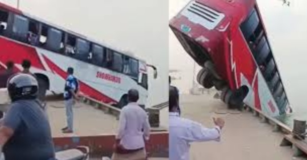 ନୂଆଦିଲ୍ଲୀ: ବାଂଲାଦେଶର ରାଜବାରୀ ଜିଲ୍ଲା ଅନ୍ତର୍ଗତ ଦୌଲତଦିଆ ଫେରୀ ଘାଟରେ ଏକ ମର୍ମନ୍ତୁଦ ସଡ଼କ ଦୁର୍ଘଟଣା ଘଟିଛି। ଏକ ଯାତ୍ରୀବାହୀ ବସ୍ ନିୟନ୍ତ୍ରଣ ହରାଇ ପଦ୍ମା ନଦୀ ଗର୍ଭକୁ ଖସି ପଡ଼ିବାରୁ ୨୩ ଜଣ ପ୍ରାଣ ହରାଇଛନ୍ତି। ମୃତକଙ୍କ ମଧ୍ୟରେ ୧୦ ଜଣ ମହିଳା ଓ ୨ ଜଣ ଶିଶୁ ରହିଥିବା ସୂଚନା ମିଳିଛି। ସୂଚନା ଅନୁଯାୟୀ, ପ୍ରାୟ ୫୦ ଜଣ ଯାତ୍ରୀଙ୍କୁ ନେଇ ବସଟି କୁଷ୍ଠିଆ ଜିଲ୍ଲାରୁ ଢାକା ଅଭିମୁଖେ ଯାଉଥିଲା। ଫେରୀ ଉପରକୁ ଚଢ଼ିବା ସମୟରେ ବସଟି ଭାରସାମ୍ୟ ହରାଇ ନଦୀକୁ ଖସି ପଡ଼ିଥିଲା। ଇଦ୍ ଛୁଟି ସାରି ନିଜ କର୍ମକ୍ଷେତ୍ରକୁ ଫେରୁଥିବା ଯାତ୍ରୀମାନେ ହିଁ ଏହି ଦୁର୍ଘଟଣାର ଶିକାର ହୋଇଛନ୍ତି। କିଛି ଯାତ୍ରୀ ପହଁରି ନଦୀରୁ ବାହାରିବାରେ ସଫଳ ହୋଇଥିଲେ ମଧ୍ୟ ସେମାନଙ୍କ ମଧ୍ୟରୁ ଅନେକ ଗୁରୁତର ଆହତ ହୋଇଛନ୍ତି। ଆହତମାନଙ୍କୁ ଗୋଆଲାଣ୍ଡୋ ଉପଜିଲ୍ଲା ସ୍ୱାସ୍ଥ୍ୟ କେନ୍ଦ୍ର ଏବଂ ଫରିଦପୁର ମେଡିକାଲ କଲେଜ ହସ୍ପିଟାଲରେ ଭର୍ତ୍ତି କରାଯାଇଛି।