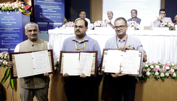 ନୂଆଦିଲ୍ଲୀ/ଭୁବନେଶ୍ୱର, ଜୁନ ୧୮ – ଦିବ୍ୟାଙ୍ଗଜନଙ୍କ ପାଇଁ ସମାନ ଶିକ୍ଷା ସୁନିଶ୍ଚିତ କରିବା ଏବଂ ସମାବେଶୀ ଭାରତ ଗଠନ ଦିଗରେ ଗୁରୁତ୍ୱପୂର୍ଣ୍ଣ ପଦକ୍ଷେପ ସ୍ୱରୂପ ବୁଧବାର ନୂଆଦିଲ୍ଲୀ ଠାରେ କେନ୍ଦ୍ର ଶିକ୍ଷା ମନ୍ତ୍ରୀ ଧର୍ମେନ୍ଦ୍ର ପ୍ରଧାନ ଏବଂ କେନ୍ଦ୍ର ସାମାଜିକ ନ୍ୟାୟ ଏବଂ ସଶକ୍ତିକରଣ ମନ୍ତ୍ରୀ ଡ. ବୀରେନ୍ଦ୍ର କୁମାରଙ୍କ ଉପସ୍ଥିତିରେ ଏକ ତ୍ରିପାକ୍ଷିକ ବୁଝାମଣାପତ୍ର (ଏମଓୟୁ) ସ୍ୱାକ୍ଷରିତ ହୋଇଯାଇଛି ।