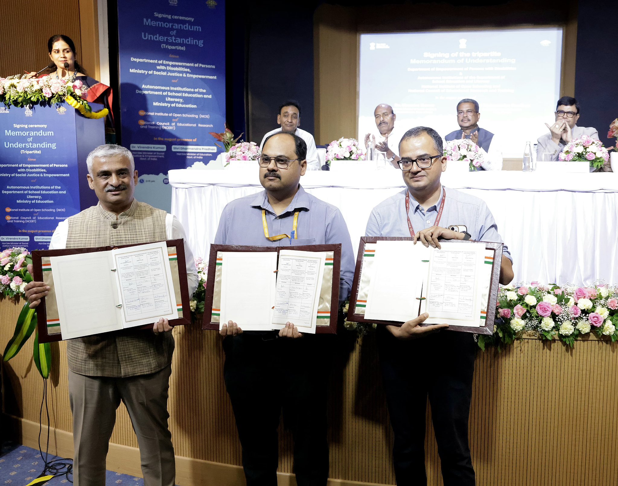 ଡିପାର୍ଟମେଣ୍ଟ ଅଫ୍ ଏମ୍ପପାଓ୍ୱାରମେଣ୍ଟ୍ ଅଫ୍ ପର୍ସନ ଓ୍ୱିଥ୍ ଡିଜାବିଲିଟି (ସାମାଜିକ ନ୍ୟାୟ ଏବଂ ସଶକ୍ତିକରଣ ମନ୍ତ୍ରଣାଳୟ), ଜାତୀୟ ମୁକ୍ତ ବିଦ୍ୟାଳୟ ପ୍ରତିଷ୍ଠାନ (ଏନଆଇଓଏସ) ଏବଂ ଜାତୀୟ ଶିକ୍ଷା ଗବେଷଣା ଏବଂ ତାଲିମ ପରିଷଦ (ଏନସିଇଆରଟି), ଶିକ୍ଷା ମନ୍ତ୍ରଣାଳୟର ବିଦ୍ୟାଳୟ ଶିକ୍ଷା ଏବଂ ସାକ୍ଷରତା ବିଭାଗ ମଧ୍ୟରେ ବୁଝାମଣାପତ୍ର ସ୍ୱାକ୍ଷରିତ ହୋଇଛି । ଶ୍ରୀ ପ୍ରଧାନ କହିଛନ୍ତି ଯେ ସର୍ବବ୍ୟାପୀ, ସର୍ବସ୍ପର୍ଶୀ ଏବଂ ସମାନ ଶିକ୍ଷା ହେଉଛି ଜାତୀୟ ଶିକ୍ଷା ନୀତିର ମୂଳ ବିଚାର । ଆଜିର ବୁଝାମଣାପତ୍ର ଜାତୀୟ ଶିକ୍ଷା ନୀତିର ଏହି ଭାବନାକୁ ଆଗକୁ ବଢ଼ାଇବା ଦିଗରେ ଏକ ଭଲ ପ୍ରୟାସ । ଏହି ବୁଝାମଣାପତ୍ର ଦିବ୍ୟାଙ୍ଗ ପିଲାମାନଙ୍କୁ ଶିକ୍ଷାର ସମାନ ସୁଯୋଗ ପ୍ରଦାନ କରିବା, ସେମାନଙ୍କ ଅଧିକାରକୁ ସୁରକ୍ଷା ଦେବା, ଶିକ୍ଷାରେ ସମସ୍ତଙ୍କ ଅଂଶଗ୍ରହଣକୁ ସୁନିଶ୍ଚିତ କରିବା ଏବଂ ଏକ ସମାବେଶୀ ଭାରତ ଗଠନ କରିବାରେ ଏକ ମାଇଲଖୁଣ୍ଟ ପ୍ରମାଣିତ ହେବ ।