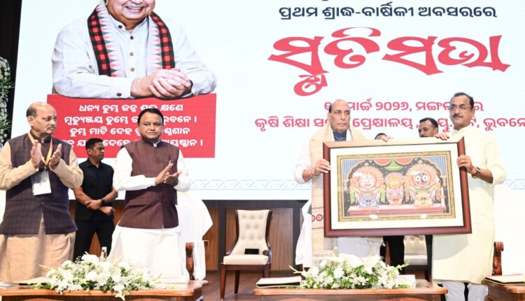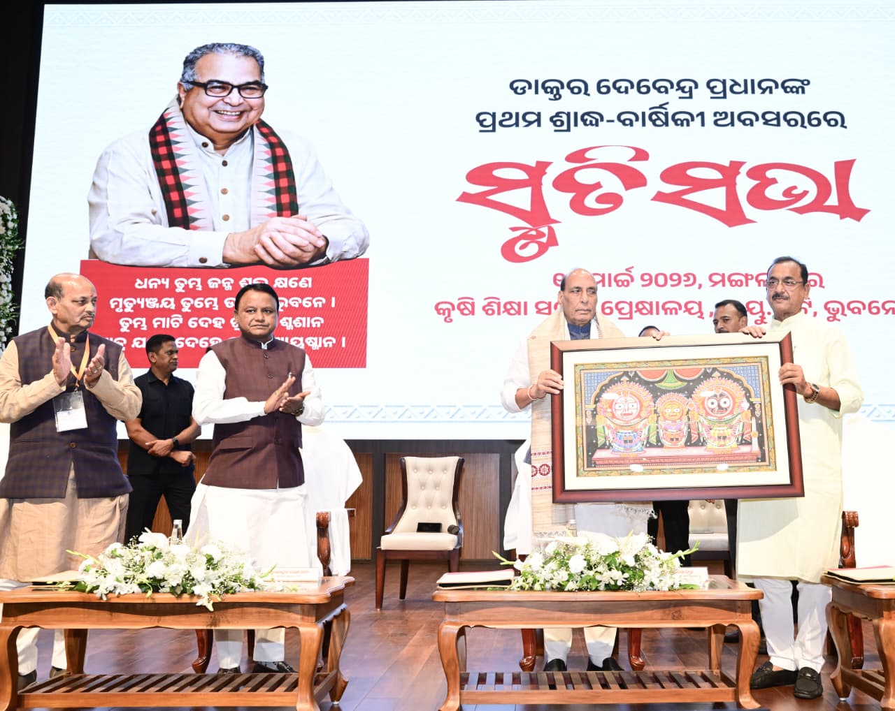 ଭୁବନେଶ୍ୱର, ୧୭ ମାର୍ଚ୍ଚ ୨୦୨୬: ଡାକ୍ତର ଦେବେନ୍ଦ୍ର ପ୍ରଧାନ ଓଡ଼ିଶା ବିଜେପିର ଭୀଷ୍ମ ପିତାମହ ଥିଲେ । ସେ କେବଳ ଜଣେ ରାଜନେତା ନଥିଲେ, ବରଂ ଜଣେ ସ୍ପଷ୍ଟବାଦୀ, ସରଳ ଓ ନିରାଡ଼ମ୍ବର ବ୍ୟକ୍ତିତ୍ୱ ଥିଲେ । ଯାହା କହୁଥିଲେ, କରୁଥିଲେ, ମିଛ ପ୍ରତିଶ୍ରୁତି ଦେଉନଥିଲେ । ସମସ୍ତ କାର୍ଯ୍ୟକର୍ତ୍ତାଙ୍କୁ ସାଙ୍ଗରେ ନେଇ ଚାଲୁଥିବାର ବିରଳ ମଣିଷ ଥିଲେ ବୋଲି କହିଛନ୍ତି କେନ୍ଦ୍ର ପ୍ରତିରକ୍ଷା ମନ୍ତ୍ରୀ ଶ୍ରୀ ରାଜନାଥ ସିଂହ ।
