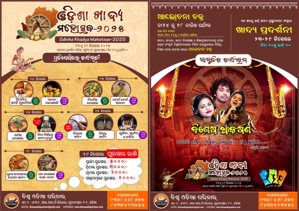 ଆସନ୍ତା କାଲିଠାରୁ ଆରମ୍ଭ ହେବ“ଓଡିଶା ଖାଦ୍ୟ ମହୋତ୍ସବ – ୨୦୨୫”