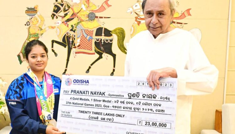 ଓଡ଼ିଶାର ଗୋଲ୍ଡେନ୍ ଜିମ୍ନାଷ୍ଟ ପ୍ରଣତି ନାୟକଙ୍କୁ ୨୩ଲକ୍ଷ ଟଙ୍କାର ପୁରସ୍କାର ସହ ସମ୍ମାନିତ କଲେ ମୁଖ୍ୟମନ୍ତ୍ରୀ