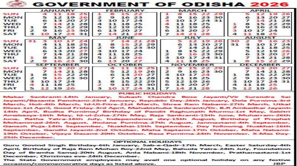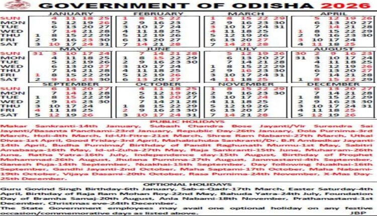 ୨୦୨୬ ବର୍ଷ ପାଇଁ ସରକାରୀ କ୍ୟାଲେଣ୍ଡର ପ୍ରକାଶିତ