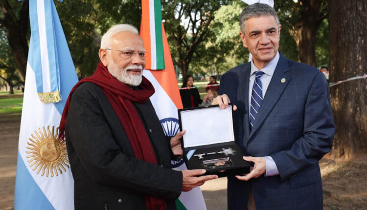 ନୂଆଦିଲ୍ଲୀ: ପ୍ରଧାନମନ୍ତ୍ରୀ ନରେନ୍ଦ୍ର ମୋଦୀଙ୍କୁ ବ୍ୟୁନସ୍ ଏୟାର୍ସ ନଗର ସରକାରଙ୍କ ମୁଖ୍ୟ ଜର୍ଜ ମ୍ୟାକ୍ରି ବ୍ୟୁନସ୍ ଏୟାର୍ସ ସହରର ଚାବି ପ୍ରଦାନ କରିଛନ୍ତି।