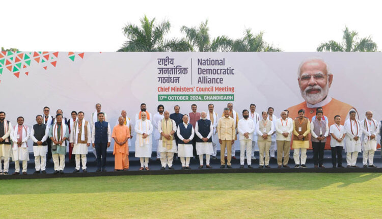 ନୂଆଦିଲ୍ଲୀ: ପ୍ରଧାନମନ୍ତ୍ରୀ ନରେନ୍ଦ୍ର ମୋଦୀ ଏନ୍ଡିଏ ମୁଖ୍ୟମନ୍ତ୍ରୀ ଏବଂ ଉପମୁଖ୍ୟମନ୍ତ୍ରୀମାନଙ୍କର ଏକ ବୈଠକରେ ଅଧ୍ୟକ୍ଷତା କରିଛନ୍ତି। ଜାତୀୟ ପ୍ରଗତିକୁ ଆଗକୁ ବଢ଼ାଇବା ଏବଂ ଗରିବ ତଥା ଦଳିତମାନଙ୍କୁ ସଶକ୍ତ କରିବା ପାଇଁ ପ୍ରତିବଦ୍ଧତାକୁ ସେ ନିଶ୍ଚିତ କରିଛନ୍ତି।
