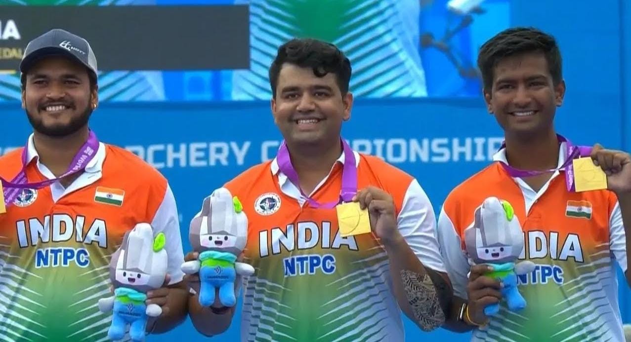 ପ୍ରଥମଥର ପାଇଁ ପୁରୁଷ କମ୍ପାଉଣ୍ଡ ଟିମ ବିଶ୍ୱ ତୀରନ୍ଦାଜୀ ଚାମ୍ପିୟନଶିପରେ ଭାରତ କୁ ମିଳିଲା ସ୍ୱର୍ଣ୍ଣ