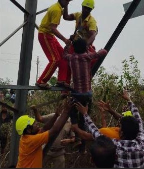 ଭୁବନେଶ୍ବର: ୩୩ କେଭି ବିଦ୍ୟୁତ୍ ଖୁଣ୍ଟରେ ଚଢିଗଲେ ଯୁବକ। ହେଲେ ସ୍ଥାନୀୟ ଲୋକ ତଳକୁ ଓହ୍ଲାଇବାକୁ ଯେତେ କହିଥିଲେ ବି ଯୁବକ ଜଣକ କାହରି କଥା ଶୁଣିନଥିଲେ। ଫଳରେ ବାଧ୍ୟ ହୋଇ କିଛି ସ୍ଥାନୀୟ ଲୋକ ଚାଉଳିଆଗଞ୍ଜ ଅଗ୍ନିଶମ କର୍ମଚାରୀ ଙ୍କୁ ଏ ନେଇ ଖବର ଦେଇଥିଲେ। ପରେ ଦୁଇ ଜଣ କର୍ମଚାରୀ ଦଉଡ଼ି, ହାର୍ନେସ୍ ଏବଂ ଅନ୍ୟାନ୍ୟ ସୁରକ୍ଷା ଉପକରଣ ସହିତ ଘଟଣାସ୍ଥଳରେ ପହଞ୍ଚି ବିଦ୍ୟୁତ୍ ଖୁଣ୍ଟ ଉପରେ ଚଢ଼ିଥିଲେ। ପ୍ରାୟ ୫୦ ଫୁଟ ଉଚ୍ଚ ବିଦ୍ୟୁତ୍ ଖୁଣ୍ଟରୁ ଯୁବକ ଜଣଙ୍କୁ ସୁରକ୍ଷିତ ଭାବରେ ଜୀବିତ ଉଦ୍ଧାର କରାଯାଇଥିଲା। ଯୁବକ ଜଣକ ନରେଶ ମାରାଣ୍ଡି ଏବଂ ତାଙ୍କ ବୟସ ୩୦ ବର୍ଷ ବୋଲି ସୂଚନା ମିଳିଛି। ତେବେ ଯୁବକ ଜଣକ କଣ ପାଇଁ ଏଭଳି ପଦକ୍ଷେପ ନେଇଥିଲେ , ତାହା ବର୍ତ୍ତମାନ୍ ପର୍ଯ୍ୟନ୍ତ ଜଣାପଡିନାହିଁ।